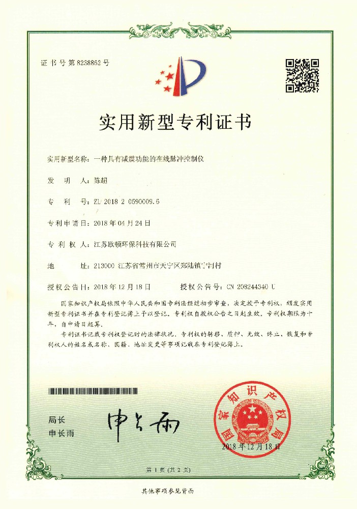 實用新型專利證書