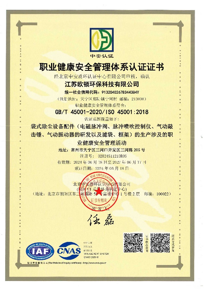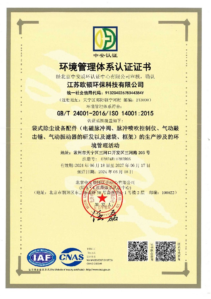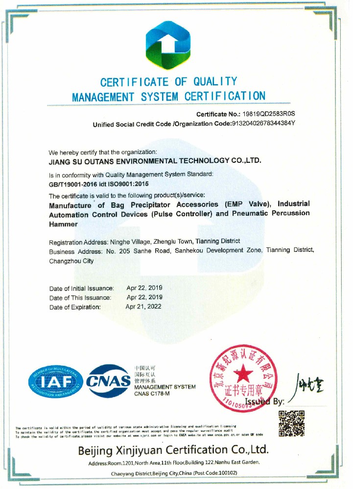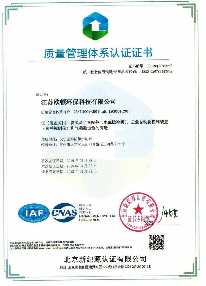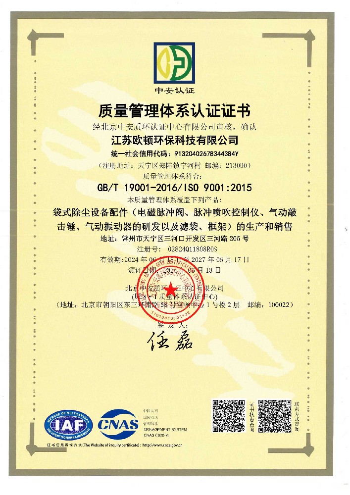 質(zhì)量管理體系認(rèn)證證書